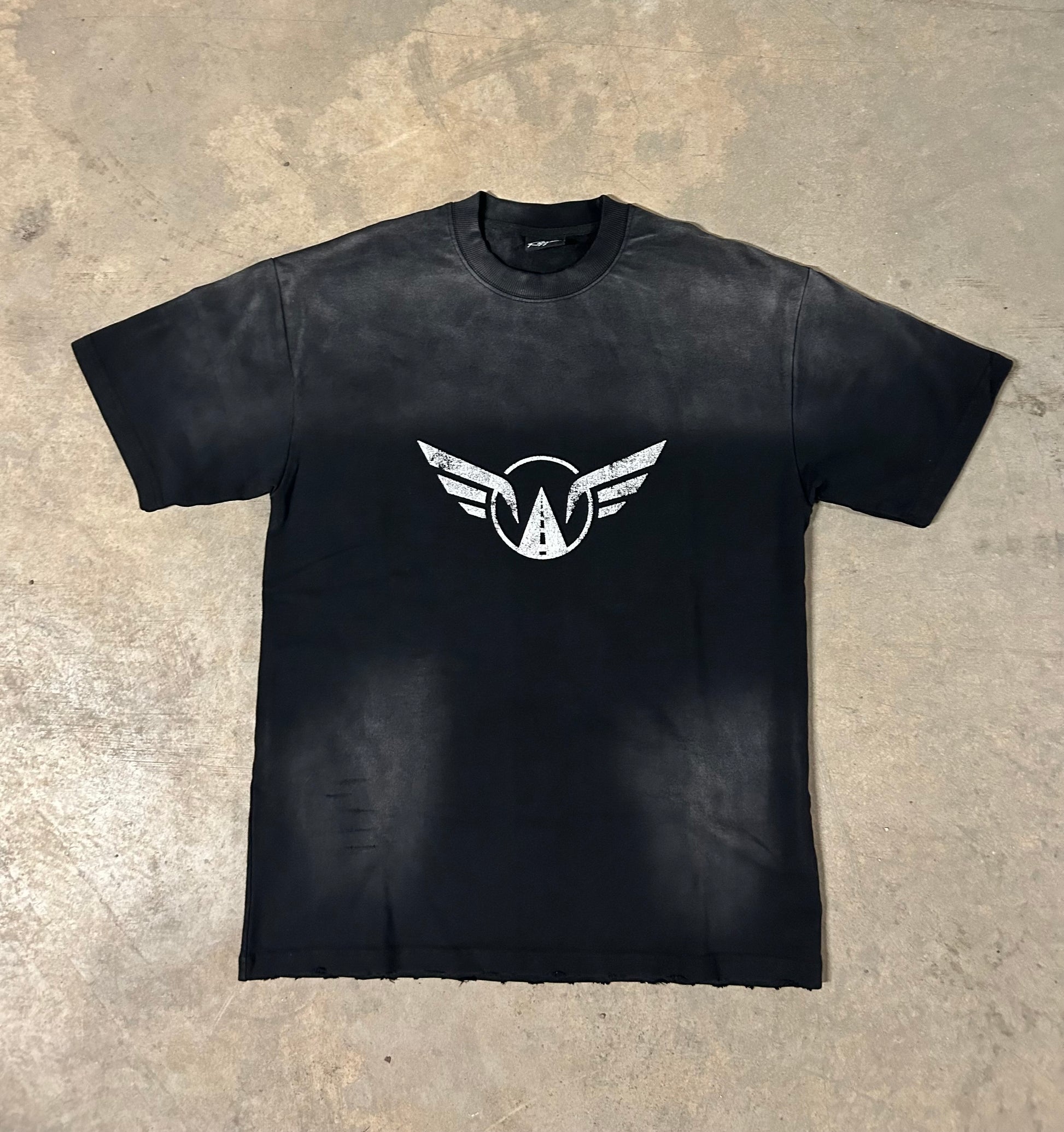 Black Acid-Washed Drop Shoulder 12 OZ. T Shirt with Thick Rib Neck. 100% Cotton Premium Feel.